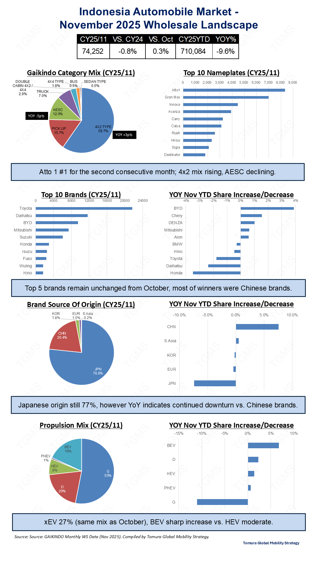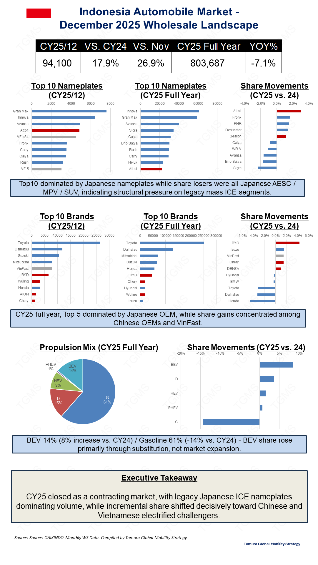 Monthly Indonesia auto market insights—Flash, Lite, and Full versions—TGMS-harmonized using Gaikindo wholesale, production, import, and export data.